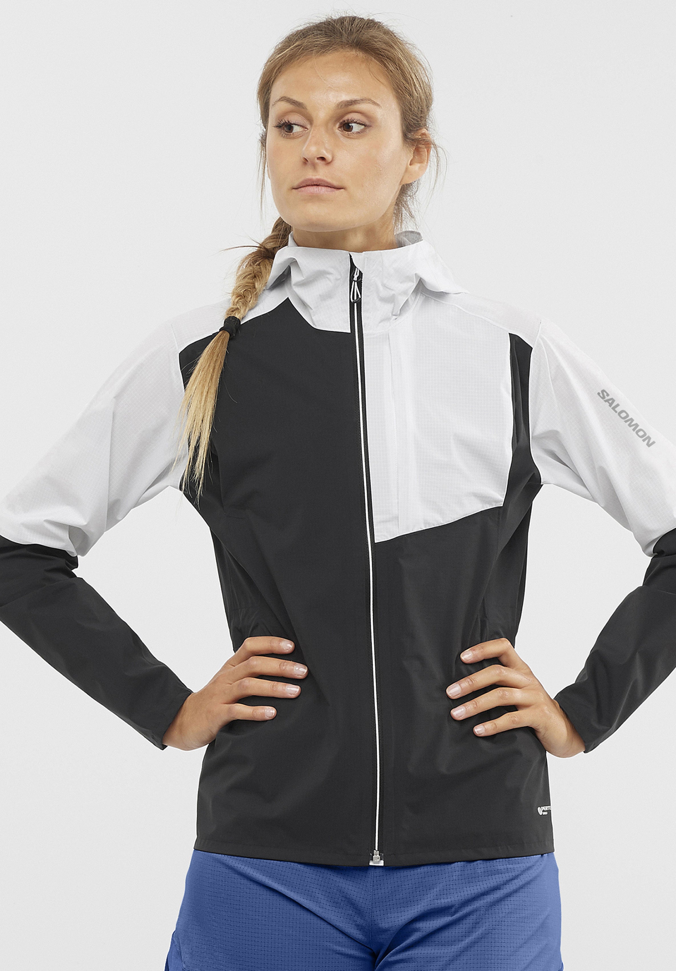With a smart construction and seamless shoulders, the women’s BONATTI TRAIL waterproof jacket makes no compromises and is ready for the most technical trails. The premium Japanese PERTEX® fabric wraps you a lightweight layer of waterproof protection, while the optimized, women-specific fit means you can wear it over a Salomon hydration pack (12L).